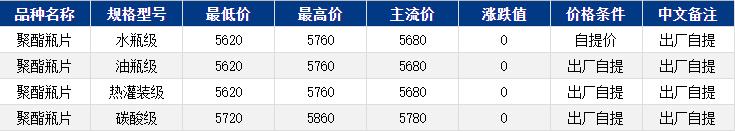 華東聚酯瓶片暫穩(wěn),商談5680元/噸附近。市場情緒有所緩和,聚酯瓶片工廠部分下調20-50元/噸,部分持穩(wěn)。市場重心窄幅震蕩,10-11月貨源報盤5640-5770,局部略高、略低;遞盤5620-5730或期貨合約2511升水10-100,考慮不確定因素較多,下游及貿易商接盤意愿不高,觀望為主。