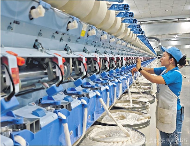 10月17日,工人在位于阿瓦提縣的新疆精一紡織科技有限責(zé)任公司紡織車間作業(yè)。該公司產(chǎn)品主要銷往浙江、廣東等地。近年來,阿瓦提縣聚焦技術(shù)創(chuàng)新與設(shè)備更新,推動(dòng)紡織產(chǎn)業(yè)向高端化、綠色化邁進(jìn)。