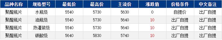 華東聚酯瓶片收于5640元/噸,上漲10元/噸,原油上漲帶動(dòng)原料上行,聚酯瓶片重心略有上揚(yáng)。場(chǎng)內(nèi)低價(jià)貨源相對(duì)收斂,10-11月貨源報(bào)盤5550-5730,局部略高略低或期貨合約2512平水至升水120,遞盤5580-5640。