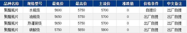 華東聚酯瓶片收于5700元/噸,漲跌值0元/噸。雖原油價格上行,然而原料繼續(xù)上行動能不足,聚酯瓶片工廠多數(shù)持穩(wěn),市場重心僵持整理。10-11月貨源報盤5650-5750,局部略低5610,略高5800或期貨合約2512貼水20至升水80,遞盤5620-5670。