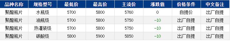 華東聚酯瓶片收于5750元/噸,下跌10元/噸,原油下跌,拖累原料震蕩偏弱,聚酯瓶片工廠基本報穩(wěn),市場重心略有下滑。10-11月貨源報盤5700-5800,局部略低5640,略高5850或期貨合約2512貼水10至升水20,遞盤5680-5750。