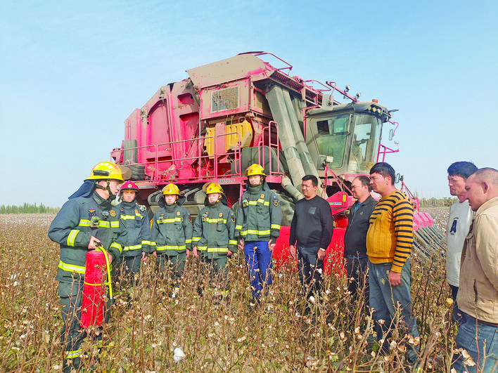 阿克蘇地區(qū)消防救援支隊深入棉田地頭開展精準(zhǔn)化消防安全服務(wù)。