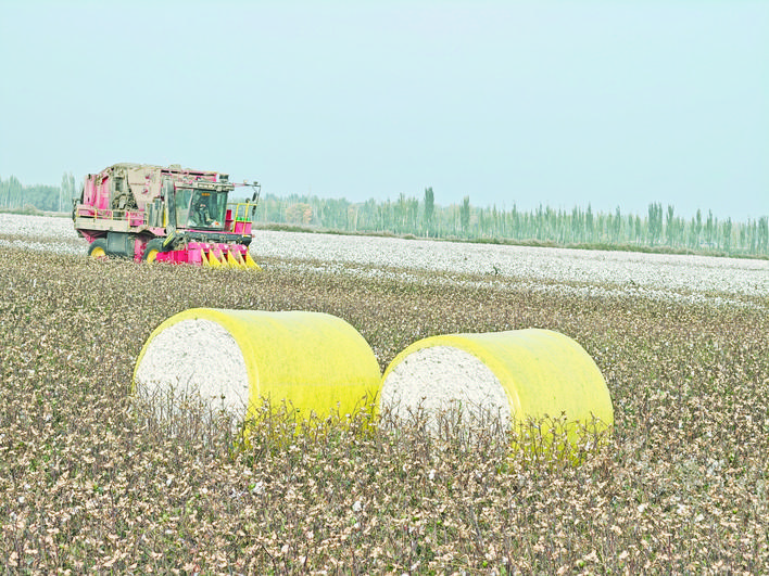 又是1年好“豐”景。10月31日,在阿瓦提縣的一片棉田里,阿瓦提縣宇豪農(nóng)業(yè)種植農(nóng)民專業(yè)合作社駕駛員王林駕駛著采棉機(jī)在田間穿梭,很快將一行行棉花收進(jìn)采棉機(jī)滾筒,壓縮成重1噸多的棉包。