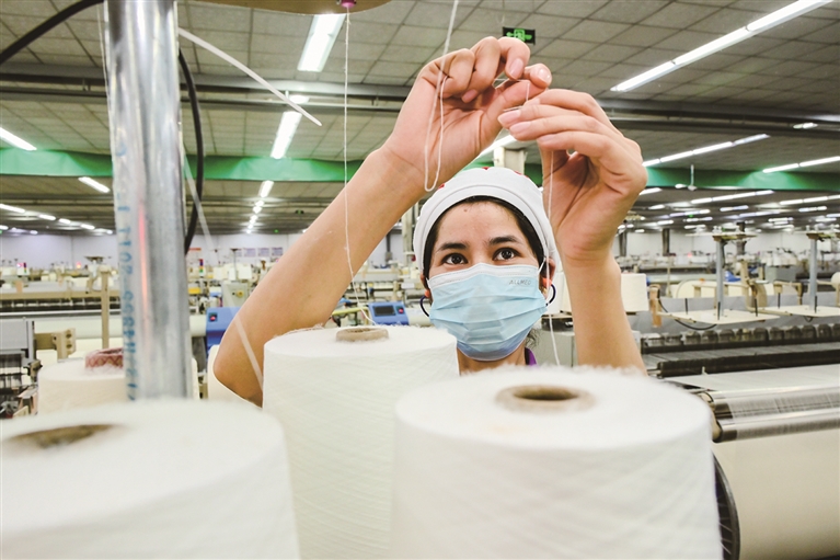 11月1日,呼圖壁縣工業(yè)園區(qū)輕工產(chǎn)業(yè)園內(nèi)的新疆泰勝醫(yī)用紡織有限公司智能化生產(chǎn)線上,工人正在有序作業(yè),全力沖刺年度產(chǎn)能目標(biāo)。近年來,呼圖壁縣依托全國優(yōu)質(zhì)棉基地優(yōu)勢,加速構(gòu)建“紡紗、織造、服裝”全產(chǎn)業(yè)鏈,吸引多家龍頭企業(yè)入駐,通過數(shù)字化轉(zhuǎn)型、智能化改造及延鏈補(bǔ)鏈,推動紡織產(chǎn)業(yè)向高端化邁進(jìn)。
