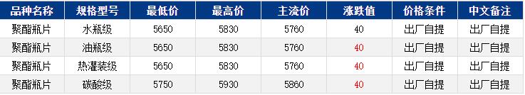 華東聚酯瓶片收于5760元/噸,漲40元/噸,原油、原料繼續(xù)上漲,聚酯瓶片重心明顯上揚(yáng)。11-12月貨源報(bào)盤5650-5830元/噸或期貨合約2601貼水40至升水40,遞盤5700-5750元/噸,下游追漲乏力,觀望為主。