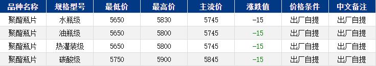 華東聚酯瓶片收于5745元/噸,漲跌值-15元/噸,原油拖累原料下滑,聚酯瓶片工廠多挺價報穩(wěn),市場重心窄幅下調(diào)。11-12月貨源報盤5650-5800元/噸,局部略高5830元/噸或期貨合約2601貼水20至升水60,遞盤5670-5720元/噸。業(yè)內(nèi)觀望情緒濃厚,實單遞盤零星。