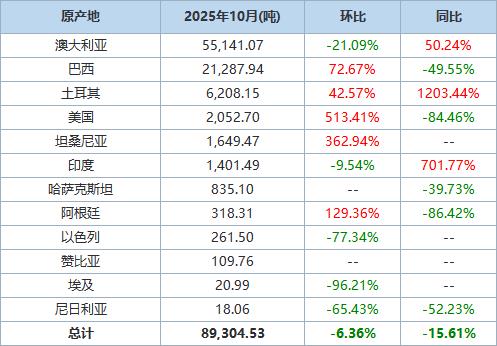 據(jù)海關(guān)統(tǒng)計(jì)數(shù)據(jù),2025年10月我國(guó)進(jìn)口棉花約9萬噸,環(huán)比減少約1萬噸,同比下降約15.6%。