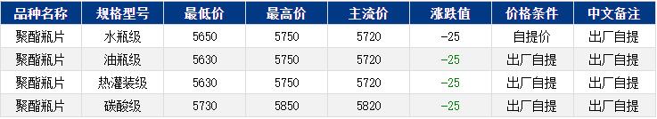 華東聚酯瓶片收于5720元/噸,漲跌值-25元/噸,原油、原料下跌,聚酯瓶片工廠部分持穩(wěn),部分下調(diào)50元/噸,市場重心窄幅下滑。11-12月貨源報(bào)盤5630-5750元/噸,局部略高5800元/噸或期貨合約2601貼水10至升水50,遞盤5660-5710元/噸。