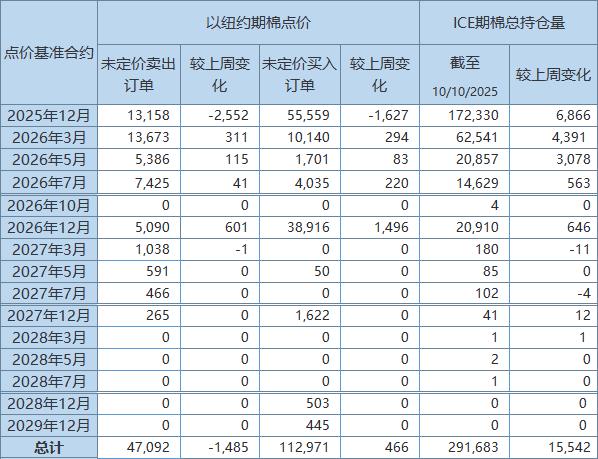 美國商品期貨交易委員會(CFTC)公布,截至10月10日,以ICE期棉2512合約點價未定價賣出訂單(UnfixedCallSales)較前周減少2552手至13158手。