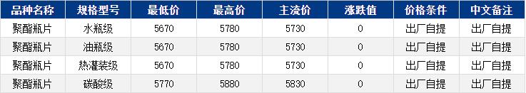 華東聚酯瓶片收于5730元/噸,漲跌值0元/噸,原料區(qū)間震蕩,聚酯瓶片工廠部分下調(diào)20-30元/噸,部分維穩(wěn),市場(chǎng)重心僵持整理。11-12月貨源報(bào)盤(pán)5690-5740元/噸,局部略高5800元/噸或期貨合約2601升水10-40,遞盤(pán)2601-10。