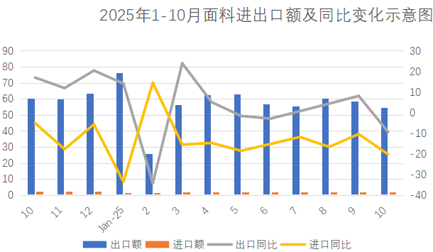 2025年1-10月紡織品出口帶動紡織服裝出口
