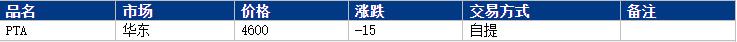 華東PTA現(xiàn)貨偏弱整理,商談參考4600元/噸附近。本周及下周主港交割報(bào)盤01貼水15-18,實(shí)單遞盤01貼水25。油價(jià)持續(xù)走弱,成本端支撐退縮,早盤現(xiàn)貨價(jià)格重心下滑,基差變化不大,整體氣氛一般。