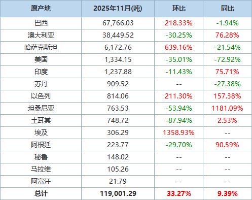 據(jù)海關(guān)統(tǒng)計數(shù)據(jù),2025年11月我國進(jìn)口棉花約12萬噸,環(huán)比增加約3萬噸,同比增長約9.4%。