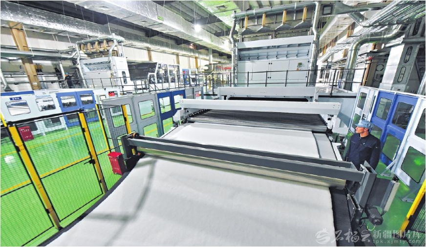 1月13日,工人在新疆中泰亨惠醫(yī)療衛(wèi)材股份有限公司水刺無(wú)紡布生產(chǎn)車(chē)間作業(yè)。近日,年產(chǎn)45萬(wàn)噸萊賽爾纖維項(xiàng)目落地庫(kù)爾勒經(jīng)濟(jì)技術(shù)開(kāi)發(fā)區(qū),不僅填補(bǔ)新疆高端環(huán)保纖維生產(chǎn)空白,也為巴音郭楞蒙古自治州打造綠色紡織產(chǎn)業(yè)高地注入強(qiáng)勁動(dòng)力。