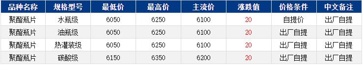 華東聚酯瓶片收于6100元/噸,漲跌值20元/噸,宏觀氛圍偏暖,加之原油提振,原料推動(dòng)下,聚酯瓶片重心繼續(xù)上揚(yáng)。場(chǎng)內(nèi)低價(jià)貨源消失,1-2月貨源報(bào)盤(pán)6050-6250元/噸或期貨合約2603升水20-40,遞盤(pán)6050-6080元/噸;下游、貿(mào)易商接盤(pán)意愿不高,觀望氛圍濃厚。