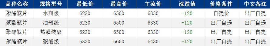 華東聚酯瓶片收于6330元/噸,漲跌值-120元/噸,原油下跌,原料支撐坍塌,聚酯瓶片工廠報(bào)價(jià)多下調(diào)150元/噸,重心隨之下滑。1-2月貨源報(bào)盤(pán)6230-6500元/噸或期貨合約2603貼水20至升水40,遞盤(pán)6300-6350元/噸。