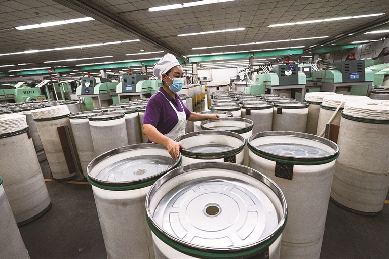 “新疆紡織服裝產(chǎn)業(yè)政策是個(gè)‘大禮包’。”新疆宇華紡織科技有限公司副總經(jīng)理于林說,“新九條”(《新疆維吾爾自治區(qū)人民政府辦公廳關(guān)于進(jìn)一步完善新疆紡織服裝產(chǎn)業(yè)政策加快延鏈補(bǔ)鏈強(qiáng)鏈九條政策措施的通知》)執(zhí)行后,每銷售1噸紗又增加50元補(bǔ)貼,企業(yè)月凈利潤增加7000多元。這家北疆規(guī)模最大的氣流紡純棉紗生產(chǎn)基地,已從最初的16萬錠發(fā)展到如今的41萬錠,日產(chǎn)棉紗近40噸。