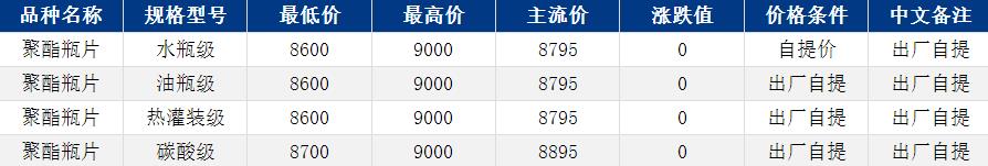 華東聚酯瓶片收于8795元/噸,漲跌值0元/噸,原油上漲,聚酯瓶片高開低走,3月貨源報(bào)盤9000-8600元/噸,遞盤8750-8800元/噸。隨著前期低價(jià)貨源陸續(xù)提貨,市場(chǎng)前期溢價(jià)開始修復(fù)。下游買氣仍偏弱,交投清淡。