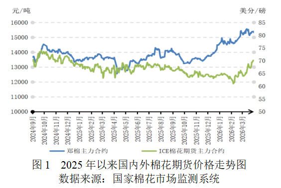 當(dāng)前市場(chǎng)對(duì)國(guó)內(nèi)外棉花供應(yīng)趨緊的預(yù)期尚未逆轉(zhuǎn),棉價(jià)下方存在支撐。但前期利好因素已部分釋放,新一輪目標(biāo)價(jià)格政策導(dǎo)向、春播實(shí)際種植面積縮減幅度、“金三”旺季過(guò)后下游訂單銜接情況有待驗(yàn)證,中東局勢(shì)演變及油價(jià)走勢(shì)仍是影響市場(chǎng)情緒的關(guān)鍵外部變量。綜合判斷,內(nèi)外棉價(jià)繼續(xù)大幅上行的動(dòng)能可能有所減弱。后期密切跟蹤政策落地、種植進(jìn)展、終端消費(fèi)及地緣政治等因素,警惕市場(chǎng)階段性波動(dòng)風(fēng)險(xiǎn)。