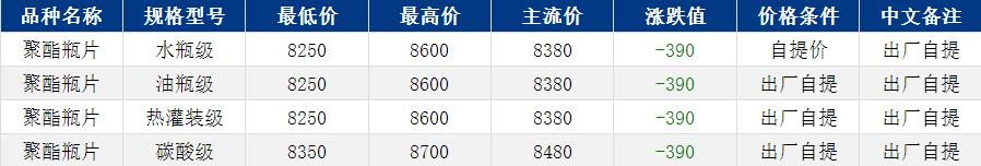 華東聚酯瓶片收于8380元/噸,漲跌值-390元/噸,美伊和談消息影響,原油跳水。拖累能化產(chǎn)品價格下滑,聚酯瓶片隨之下調(diào)。4月貨源報(bào)盤8250-8600元/噸或期貨合約2506升水300-400,部分略低8000-8300元/噸或2605升水80,遞盤8200-8350元/噸。地緣風(fēng)險溢價部分回吐,由于現(xiàn)貨流通緊張,聚酯瓶片跌幅小于原料端。