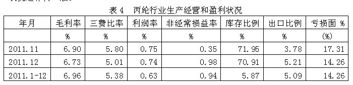 4丙綸行業(yè)生產(chǎn)經(jīng)營(yíng)和盈利狀況