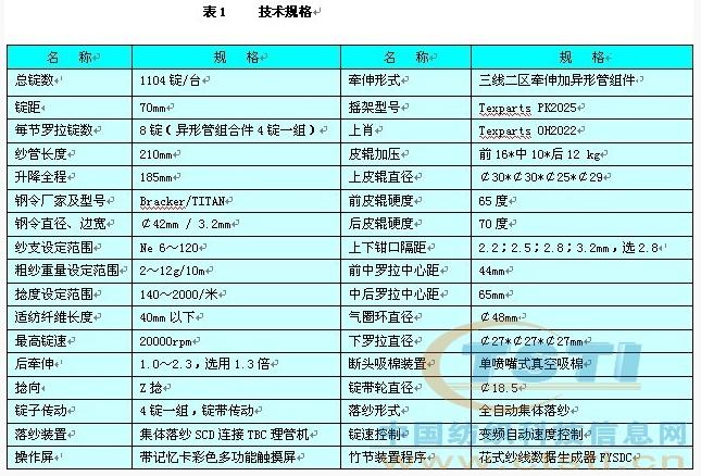 特呂茨勒清梳聯(lián)機組【抓棉機BO-A→多倉混棉機MX-U6→開棉機FD-O和T0T1→梳棉機TC5-1】→FA320A頭并→特呂TD03二并→FA468E粗紗機→RX240E豐田緊密紡紗機【電子牽伸帶竹節(jié)裝置】→NO.21C全自動絡(luò)筒機