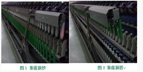②集體落紗裝置:長車集體落紗是體現(xiàn)細紗自動化程度的主要部分。氣架升降動作是通過伺服系統(tǒng)傳動螺桿式積極升降,驅(qū)動落紗氣架平穩(wěn)升降,氣架里擺、外擺動作采用單汽缸控制,動作定位準確。整臺落紗時間3分鐘,生產(chǎn)效率較高。