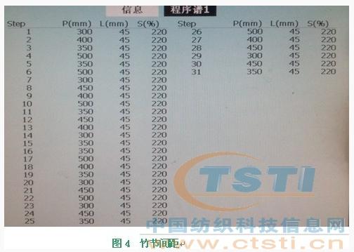 c.根據(jù)竹節(jié)紗的基本要求和質(zhì)量特性,首先要保證細紗機處于良好的運行狀態(tài),對于牽伸機構(gòu),要保證加壓穩(wěn)定,膠輥、膠圈、上銷無打頓,網(wǎng)格圈表面及異形管吸風口無積花,網(wǎng)格圈無破損、跑偏,對于卷繞加捻部件必須做到鋼領(lǐng)、錠子、導紗鉤的同心,盡可能降低卷繞過程中的張力波動。加強錠盤、錠帶的維護,減少因弱捻因素造成的捻度差異。