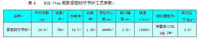綜合以上的分析,粘膠緊密紡竹節(jié)紗,較優(yōu)的工藝參數(shù)見表4: