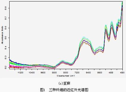 三種纖維使用相同的漫反射條件采集的近紅外光譜圖見圖1。