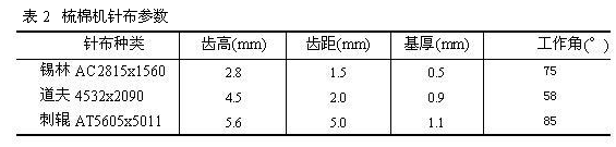表2梳棉機(jī)針布參數(shù)