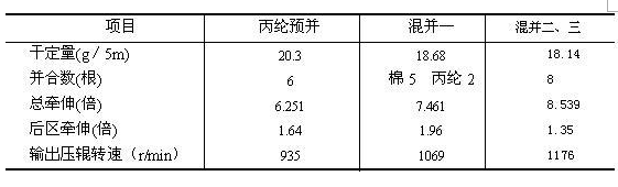 為使紗線色澤自然柔和,在頭道并條采用條混,混紡比為C:PP:70:30,適合服飾外觀要求。