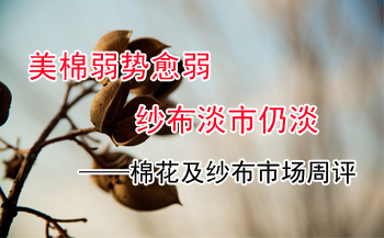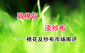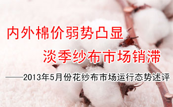【錦橋紡織網(wǎng)專稿】2013年5月份的第五周,花紗布市場行情呈現(xiàn)美棉弱勢愈弱,紗布淡市仍淡的弱勢運(yùn)行的走勢。外棉期、現(xiàn)貨價格均繼續(xù)下跌,但降幅比上周大幅收縮;國棉期、現(xiàn)貨繼續(xù)弱勢盤整運(yùn)行,微小幅度下降;滌綸短纖穩(wěn)中走弱,小幅下調(diào),粘膠短纖價格與上周持平;紗、布淡市弱行,銷勢疲滯,讓利促銷,售價下調(diào)。(參見: