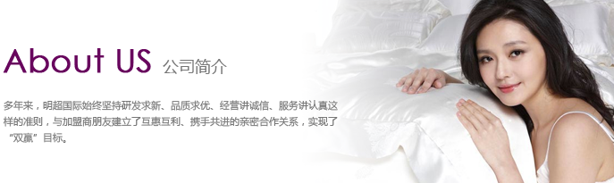 江蘇明超國際貿(mào)易有限公司是一家集研發(fā)、設(shè)計、生產(chǎn)、銷售于一體的大型專業(yè)家紡企業(yè)。明超人奮發(fā)努力,開拓創(chuàng)新,業(yè)已成長為國內(nèi)具有雄厚綜合實力的專業(yè)家紡企業(yè)。