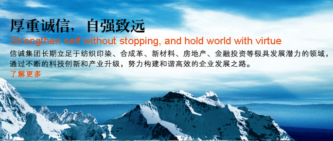 信誠集團(tuán)系外商獨(dú)資企業(yè),創(chuàng)辦于1988年,公司總部位于晉江市。經(jīng)過二十多年來的經(jīng)營,信誠集團(tuán)已發(fā)展成為一個(gè)以紡織、漂染、PU 合成革為基礎(chǔ)產(chǎn)業(yè),涉及進(jìn)出口、工貿(mào)、高新材料、房地產(chǎn)、金融、投資等多個(gè)領(lǐng)域,具有綜合性、多功能的大型投資控股集團(tuán)。