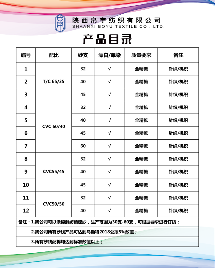 | · 精梳滌棉紗 精梳CVC60/40 1S /40 |