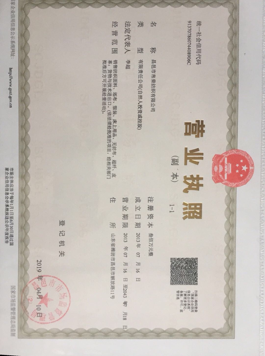 山東昌邑帛榮紡織有限公司