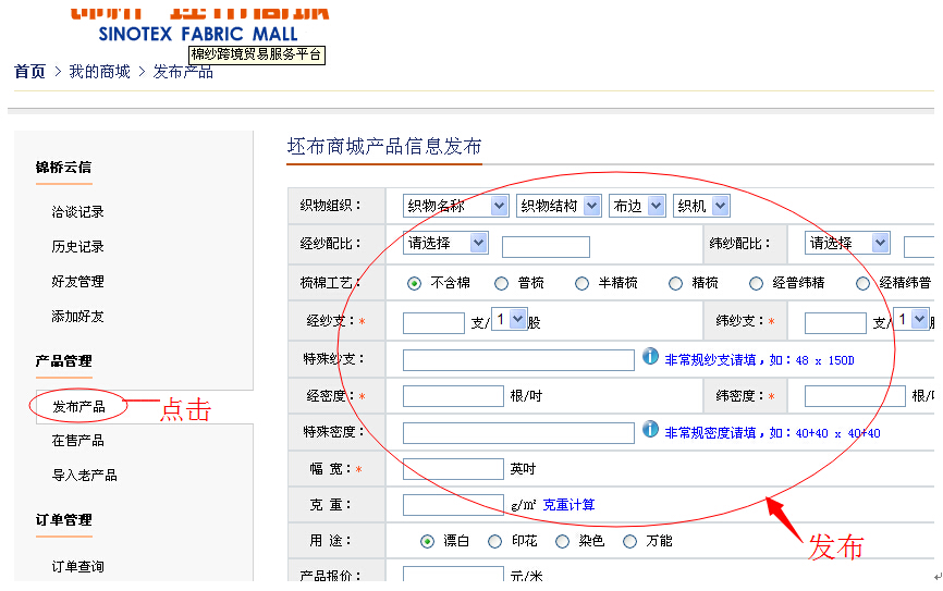 進(jìn)入“我的商城”,找到左側(cè)產(chǎn)品管理,點(diǎn)擊發(fā)布產(chǎn)品,按如下要求及步驟逐條發(fā)布: