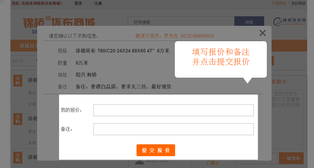 3、填寫報價和備注并提交報價