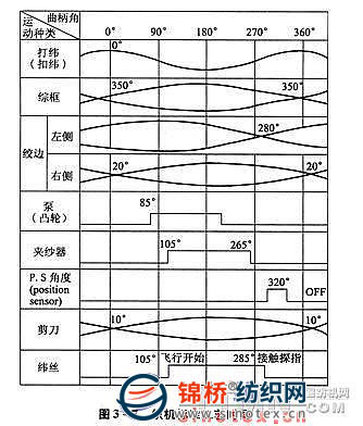 (4)引緯時緯絲飛行開始時間及引緯終了緯絲飛行終止的時間,可調(diào)整壓紗器凸輪A和B的位置來設(shè)定。