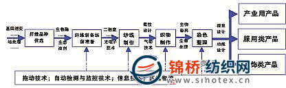 纖維預(yù)處理的任務(wù)是對棉花進行異纖分揀、消糖。而麻纖維由于家族品種繁多,結(jié)構(gòu)性能差異大,預(yù)處理的任務(wù)需要進行微生物(細菌、酶制劑)脫膠和化學脫膠兩種方法。羊毛預(yù)處理的過程為選毛、開毛、洗毛、烘毛、炭化、加油。絹絲預(yù)處理為選別、除雜、精練、水洗、脫水、干燥。針對芳綸、芳砜綸、丙綸等表面光潔、抱合能力差、模量高的合成纖維,采用物理或化學的表面預(yù)處理,可實現(xiàn)加工的預(yù)處理。 開清目的是通過開清工序,將纖維中的雜質(zhì)進行適量清除,將纖維團松解成小纖維束,與梳理成條工序共同完成對纖維的結(jié)構(gòu)松解,雜質(zhì)的基本清除。不同品種的纖維原料,所采取的開清路線也有很大差異。開清流程為纖維抓取、開松、清雜、混合、輸出(成卷/纖維流)。梳理與開清工序有機配合,有效清除細小雜質(zhì),實現(xiàn)單纖維率85%以上;進行高效混合,實現(xiàn)輸出纖維條粗細均勻一致;良好的卷裝,便于存儲、運輸。梳理工藝為后道加工,提供優(yōu)質(zhì)的梳理條。由于前道提供的梳理條在纖維排列結(jié)構(gòu)、成分含量、縱向不勻等方面仍有諸多不足,需要通過并條工序解決。并條工序主要使得纖維平行伸直度得到改善,粗細均勻度得到提高,成分均勻度得到保證,實現(xiàn)良好的存儲,為后道提供優(yōu)質(zhì)的并合條。 在開清、梳理階段,纖維中的雜質(zhì)在經(jīng)受沖擊性打擊下變成細小顆粒,纖維也被部分打斷成為短絨,為保證紡紗過程的順利進行,要進行精梳加工。精梳工藝完全清除細小雜質(zhì)、短絨,進行多根精梳條混并以改善均勻度,有效圈放以便于存儲和運輸,為后道工序提供纖維結(jié)構(gòu)優(yōu)良的清潔精梳條。 熟條(精梳/普梳)直接紡制細紗,在新型紡紗中可以實現(xiàn)。而環(huán)錠紡中由于熟條定量過重,直接紡制細紗難以獲得理想的紗線質(zhì)量,故采用粗紗進行過渡。粗紗工序?qū)κ鞐l進行適量牽伸;賦以適量的捻度;為便于存儲、運輸和后道加工(退繞),進行有效卷取和成形,為細紗工序提供質(zhì)量優(yōu)異的粗紗。細紗是紡紗加工最后一道工序,決定了紗線結(jié)構(gòu)、規(guī)格、功能、質(zhì)量。細紗工序?qū)Υ旨啑l進行定量牽伸,實現(xiàn)客戶所需的號數(shù);賦予定量捻度,滿足使用所需要的強度、手感;為便于存儲、運輸和后道加工(退繞),進行有效卷取和成形,為后加工工序提供質(zhì)量優(yōu)異的細紗。 一般單紗不能充分滿足某些工業(yè)用品和高檔織物的要求。因為單紗加捻時內(nèi)外層纖維的應(yīng)力不平衡,很難充分發(fā)揮紗線中所有纖維的強力作用,另一方面單紗也不能同時全面地滿足較多物理性能的要求。單紗經(jīng)過并合后獲得的股線性質(zhì)變化較大,能夠比較全面地滿足這些要求。捻線的實質(zhì),就是通過改善紗線中的受力狀況來提高紗線的品質(zhì)。細紗容量過小,為便于存儲、運輸和后道使用,要進行大卷裝卷繞;細紗可能存有粗細節(jié)、結(jié)/雜等,要清除。絡(luò)筒工序進行在線檢測并對疵點進行清除;根據(jù)所需進行松式筒/緊密筒卷繞,為售紗或織造,提供質(zhì)量優(yōu)異的筒子紗。 近幾十年來,轉(zhuǎn)杯紡、噴氣紡、靜電紡、摩擦紡、平行紡、渦流紡等新型紡紗技術(shù)逐步受到人們的關(guān)注。其中,轉(zhuǎn)杯紡、噴氣紡、渦流紡等技術(shù)是目前新型紡紗體系中提及最多的幾種技術(shù),轉(zhuǎn)杯紡、噴氣紡設(shè)備是使用最多的新型紡紗設(shè)備。現(xiàn)在,轉(zhuǎn)杯紡紡紗技術(shù)發(fā)展已經(jīng)比較成熟,特別是20世紀末以來轉(zhuǎn)杯紡設(shè)備的紡紗速度、紡紗質(zhì)量、自動化水平以及品種適應(yīng)性等方面都有了很大進步。噴氣紡紗具有紡紗速度高、產(chǎn)品質(zhì)量好、紡紗支數(shù)最高可達60英支以上等特點,但其品種適應(yīng)性不如環(huán)錠紡及轉(zhuǎn)杯紡。渦流紡設(shè)備不僅能生產(chǎn)化纖紗,而且還能生產(chǎn)一定支數(shù)的純棉紗,由于這種紗線具有環(huán)錠紗的真捻結(jié)構(gòu),其成紗不僅在強力方面接近同支環(huán)錠紗,而且還具有成紗質(zhì)量好、毛羽紗疵少、條干均勻等優(yōu)點。雖然新型 |