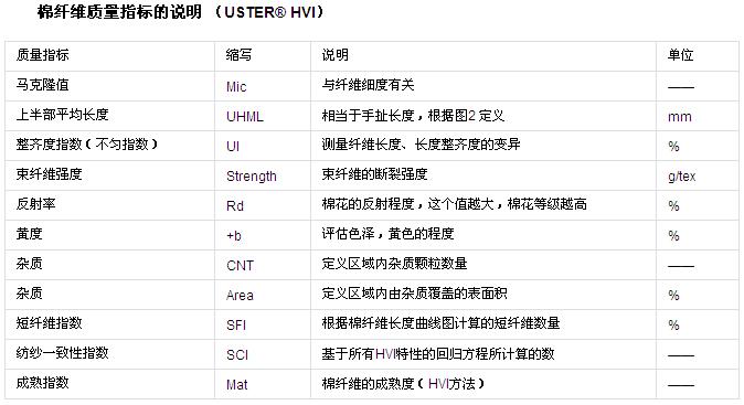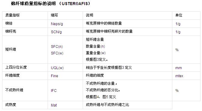 所有纖維質(zhì)量指標的定義解釋詳見下面兩個表。