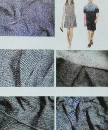 當(dāng)今牛仔布面料的開發(fā)與創(chuàng)新主要通過新材料與國際流行色的合理應(yīng)用,加之組織結(jié)構(gòu)變化及功能性后整理來實(shí)現(xiàn),目前牛仔布面料的品種十分豐富,用途越來越廣泛,其產(chǎn)品向高端化發(fā)展的態(tài)勢較為明顯,各種新型原料和紗線在牛仔布開發(fā)中都有應(yīng)用,臭氧水洗、液氨絲光、生物酶拋光及激光雕花等新型后整理工藝大大改善了牛仔布的風(fēng)格與舒適性,從而使其應(yīng)用領(lǐng)域得以擴(kuò)大。牛仔布的功能化與時(shí)尚化是該類產(chǎn)品經(jīng)久不衰的源泉。部分牛仔布展示下圖所示。