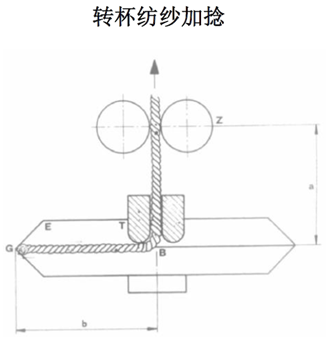 利用搓輥的往復(fù)運動對兩根須條實施同向加捻,靠須條自身的退捻力矩相互反卷在一起,形成一個雙股的穩(wěn)定結(jié)構(gòu)的紗,屬非自由端紡紗。