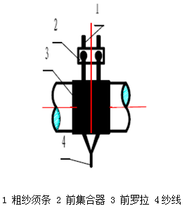 原理:將2根粗紗以一定間距平行引入細(xì)紗機牽伸區(qū)內(nèi),同時牽伸,并在集束三角區(qū)內(nèi)匯合加捻形成單紗,須條和紗均有同向捻度。