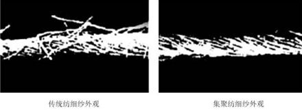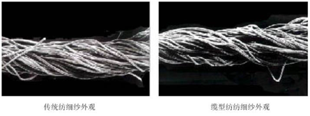 特征:外形似單紗,結(jié)構(gòu)似線,表面毛羽較環(huán)錠紗少,截面近似圓形。