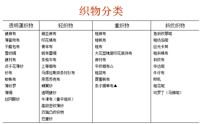常用織物分類