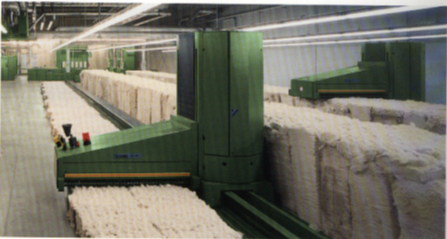1.產(chǎn)量較大的生產(chǎn)線,采用自動(dòng)抓棉機(jī)(同棉紡所用抓棉機(jī))。2.產(chǎn)量較小的生產(chǎn)線,采用人工抓取喂入。
