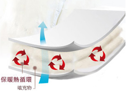 一種是典型意義上的三層保暖,面料和里料采用純棉或高含棉量的針織布料,中間夾有一層增加保暖性能的填充物。價(jià)格和保暖效果主要取決于填充物的成分和分量,填充羊絨的價(jià)格最高,保暖性也最好;填充羊毛的次之;填充多孔滌綸、腈綸的價(jià)格相對(duì)較低,雖不及羊絨羊毛但也有不錯(cuò)的保暖性能。