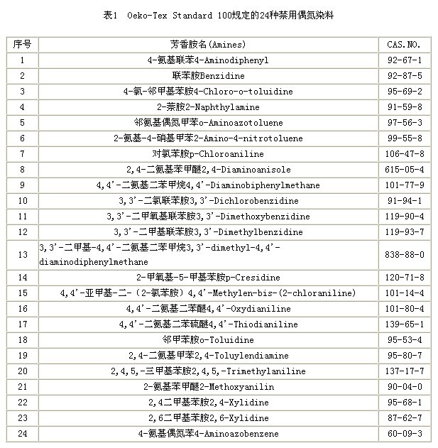 禁用偶氮染料及其檢測(cè)標(biāo)準(zhǔn)